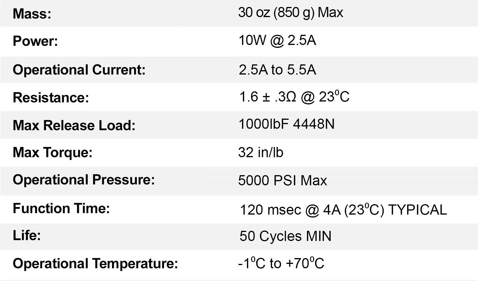 NEA (Non-Explosive Actuators) – As with all EBAD products, the ERM is non-pyrotechnic and field reset-able with a minimum qualified life of 50 cycles.