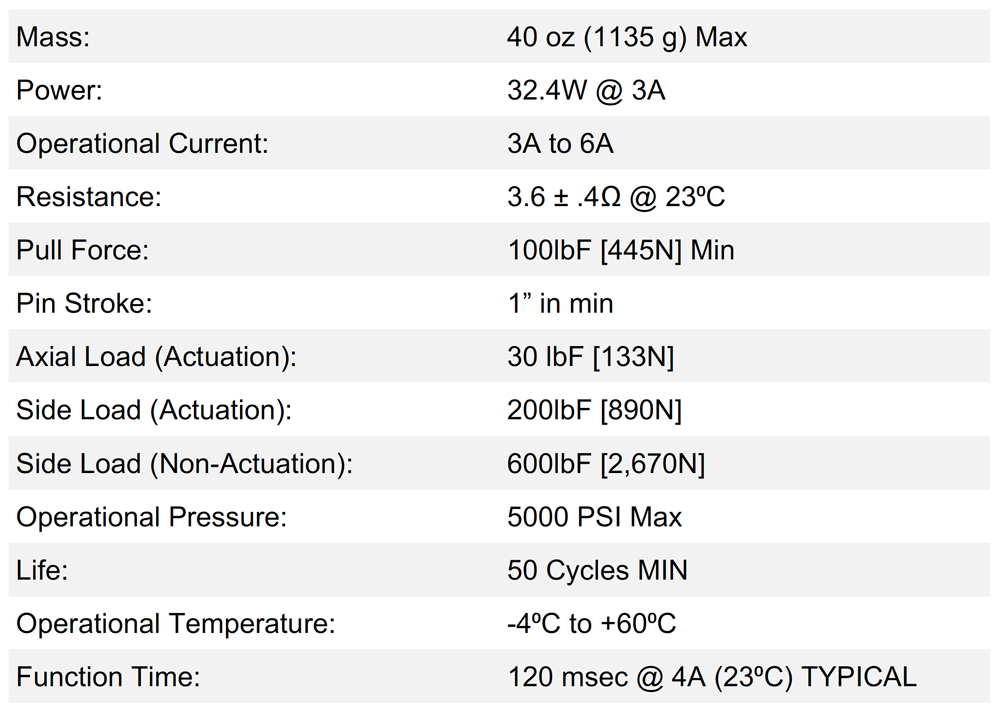 NEA (Non-Explosive Actuators) – As with all EBAD products, the Pinpuller is non-pyrotechnic and field reset-able with a minimum qualified life of 50 cycles.